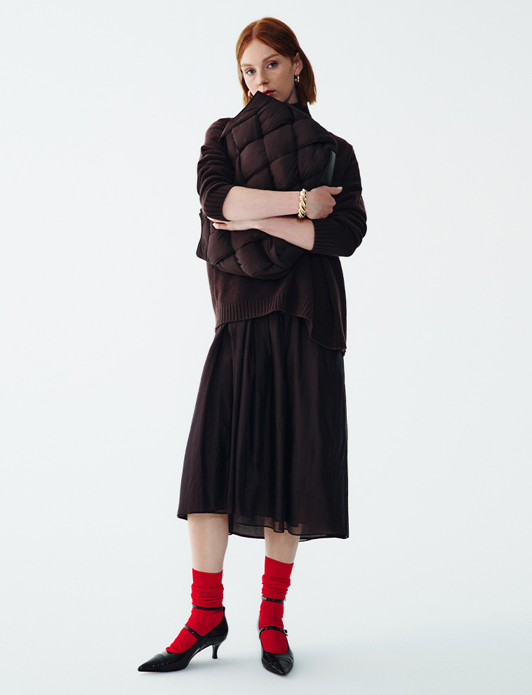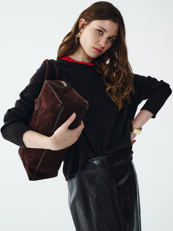 Chocolate is winter’s new temptation: maxi dresses, faux leather blazers, double-breasted peacoats mix with long gloves, snake-print slingbacks and quilted bags.
