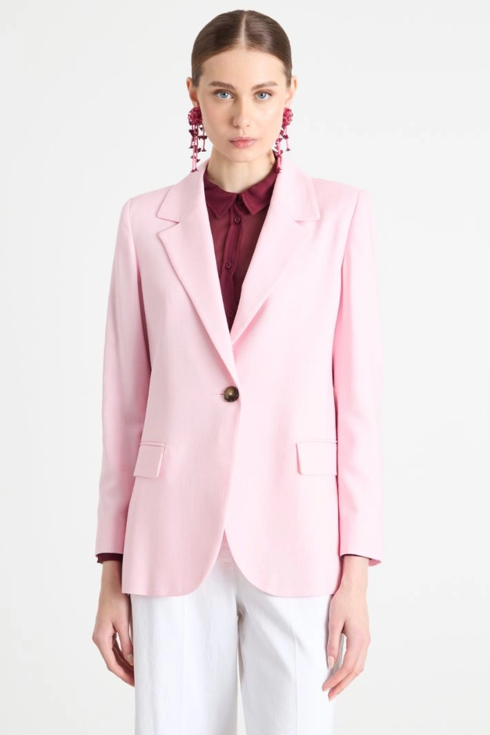 Straight-fit blazer in stretch basketweave, with a lapel collar, long sleeves with vented cuffs and flap pockets. Lined. Single-button fastening.