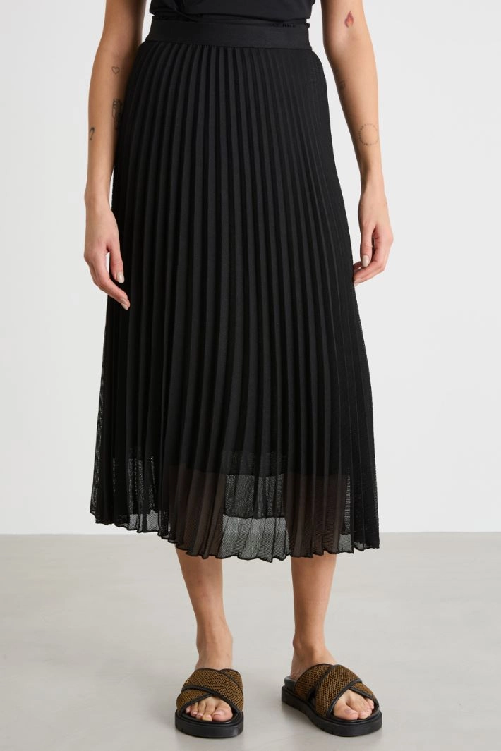 A-line skirt crafted in sunray-pleated technical mesh, featuring an elasticated waist. Lined.