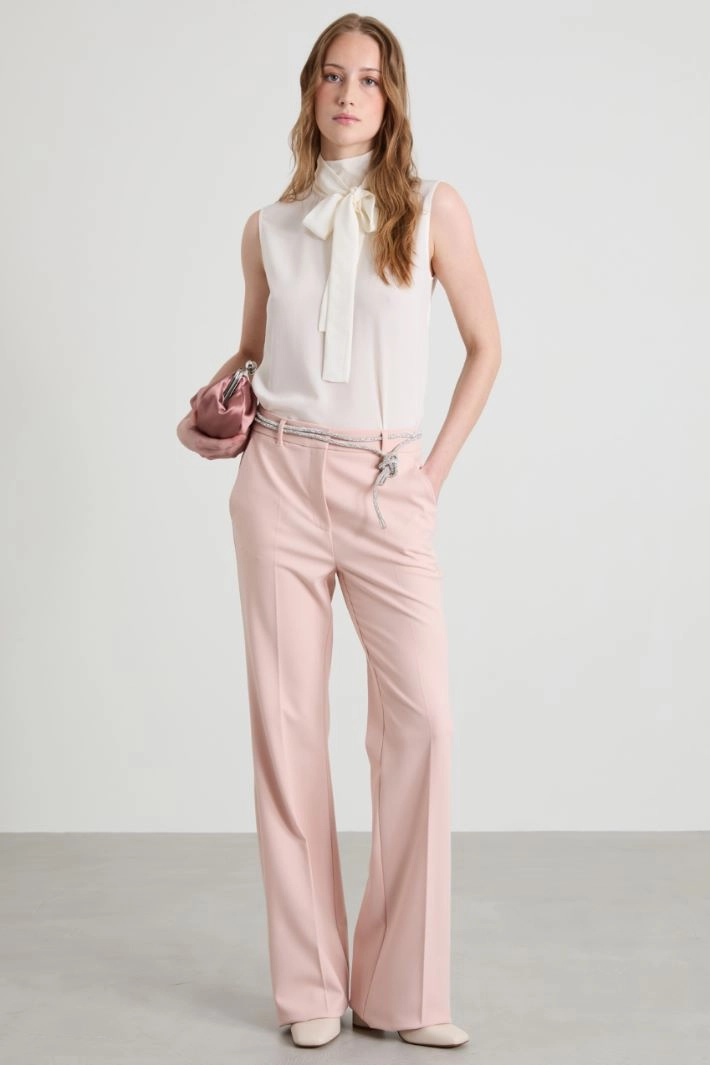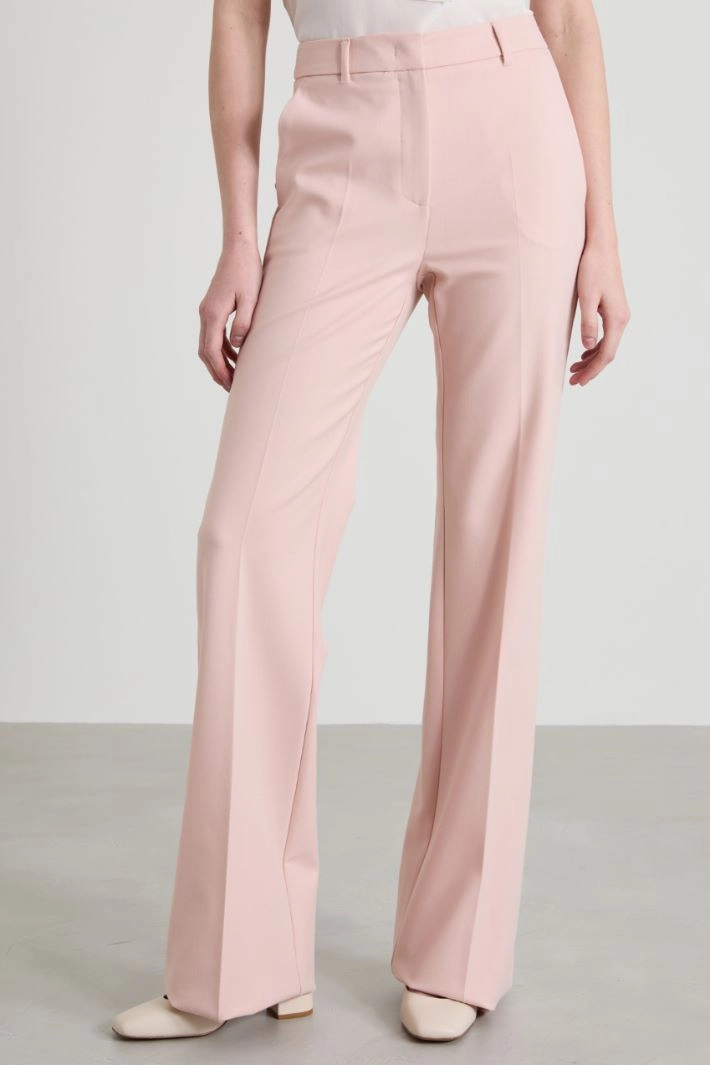 Straight-cut trousers in viscose-blend Levantine fabric, with a pressed crease, belt loops, French pockets in the front and welt pockets in the back. Concealed fastening with zip, button and hook.