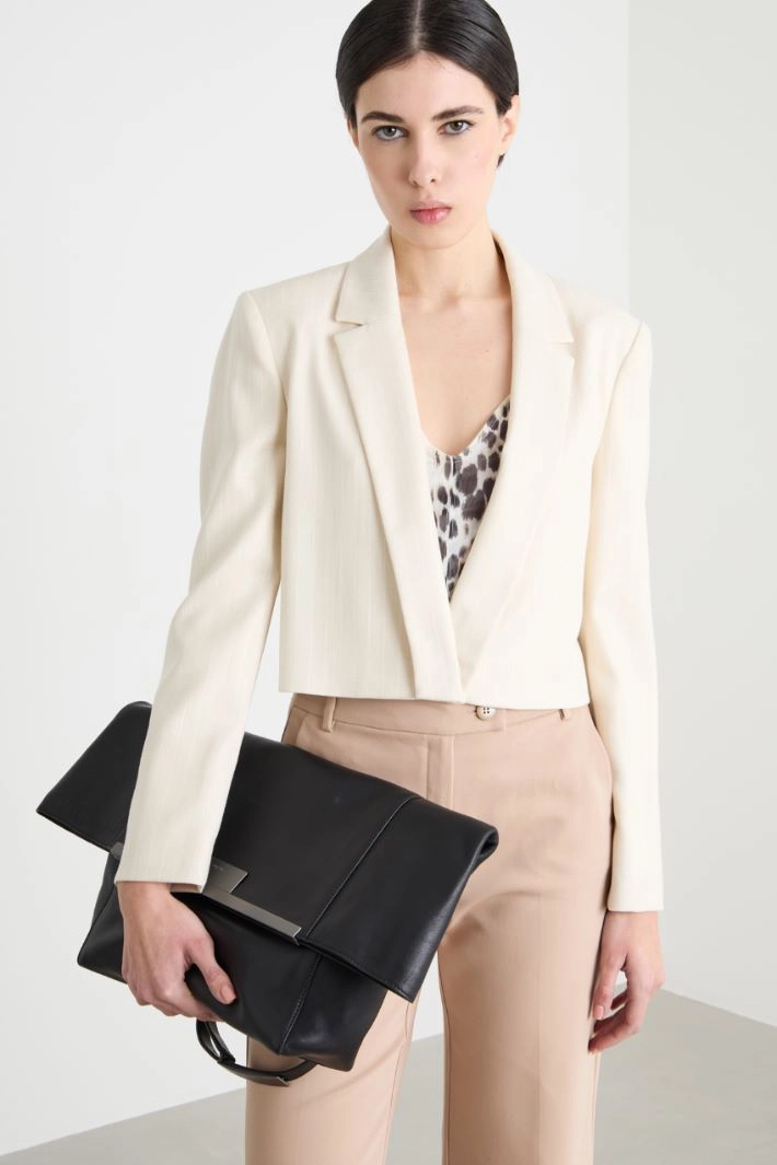 Straight-fit cropped blazer in a pinstriped viscose blend, with elongated lapels and long sleeves. Lined. Concealed button fastening.