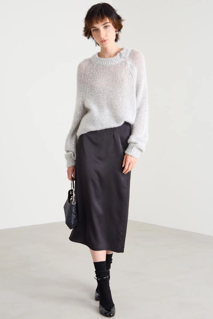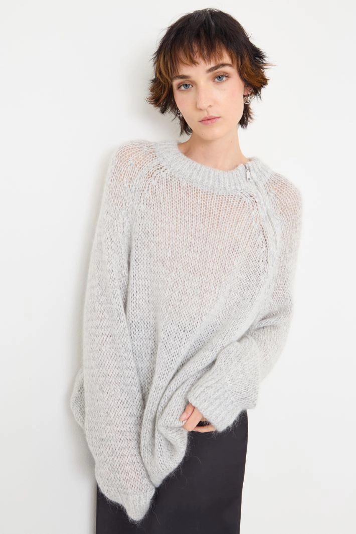Regular-fit sweater in lamé viscose blend yarn, with an asymmetric zip detail on the front, crew neck and long raglan sleeves.