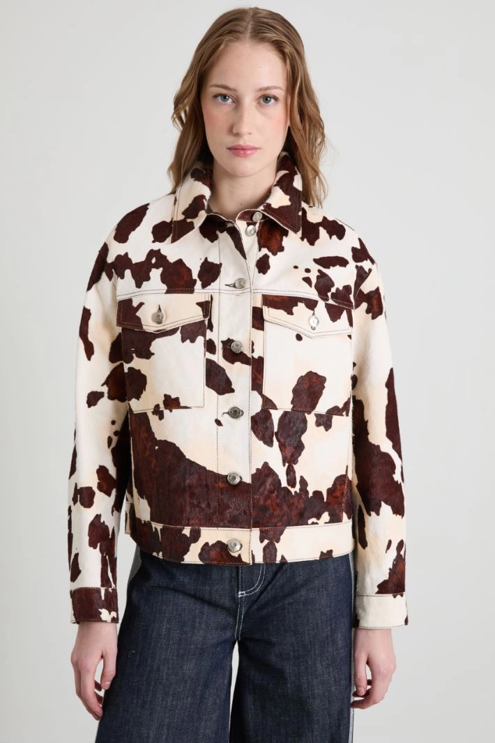 Regular-fit jacket in pony skin, with shirt collar, long sleeves with cuff and button, and patch pockets with flap on the front. Button fastening. Lined.