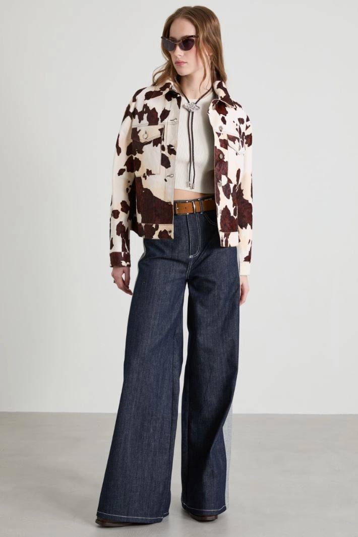 Style in cattle; with details in lamb leather; bust lining 97% polyester, 3% cotton; sleeves lining 100% polyester.