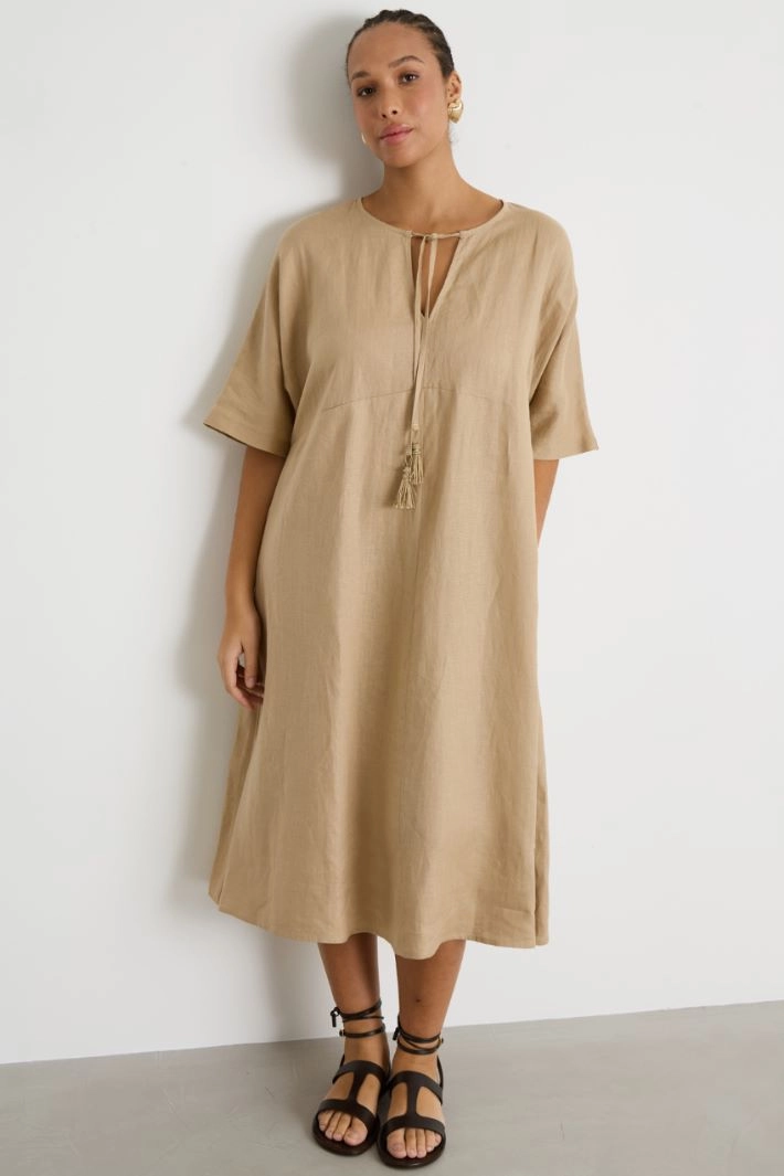 Loose-fitting dress with ties